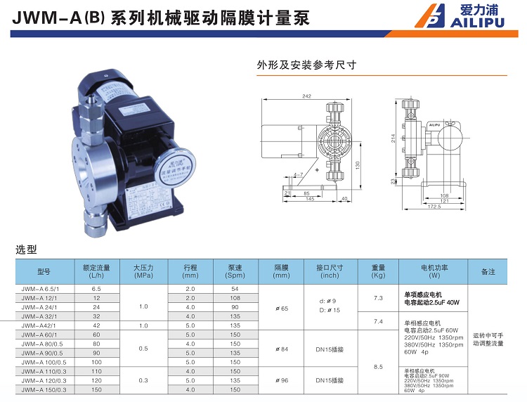 愛力浦機(jī)械隔膜式計(jì)量泵JWM-A 60/1型 耐酸堿制藥 造紙加藥泵