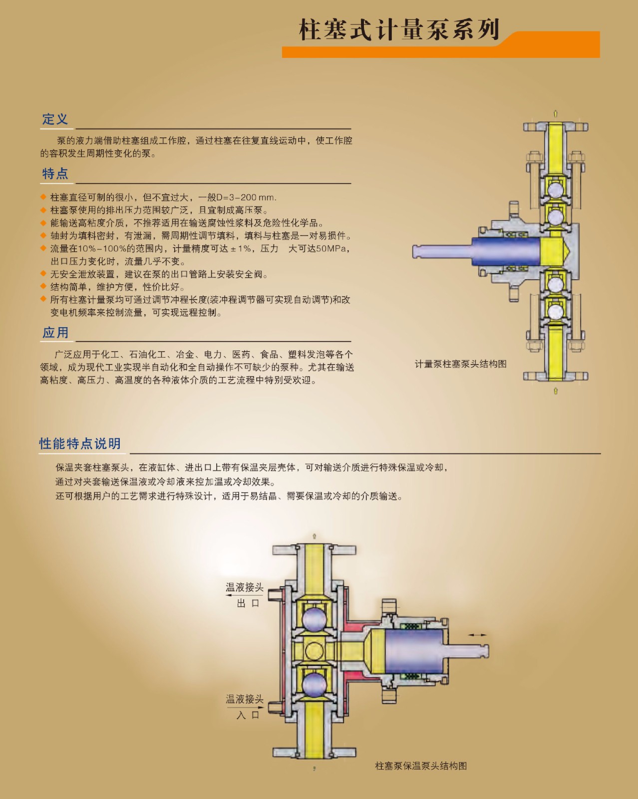 10、可根據(jù)工藝要求,泵頭可制成保溫、冷卻夾套型和電加熱型等多種特殊設(shè)計(jì)。