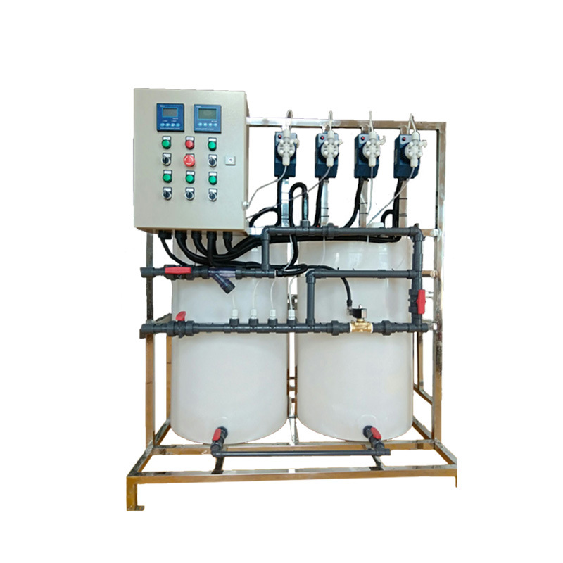 成套加藥裝置和專項成套加藥裝置有多種規(guī)格型號,產(chǎn)品包含一罐一泵,一罐兩泵,兩罐兩泵,兩罐三泵,三罐三泵及多罐多泵。系統(tǒng)所使用的配置是根據(jù)計量泵的數(shù)量和出口來定的,用戶可以根據(jù)工藝需要進行選擇,也可依據(jù)用戶的特殊需要來設計和生產(chǎn)的非定型產(chǎn)品。