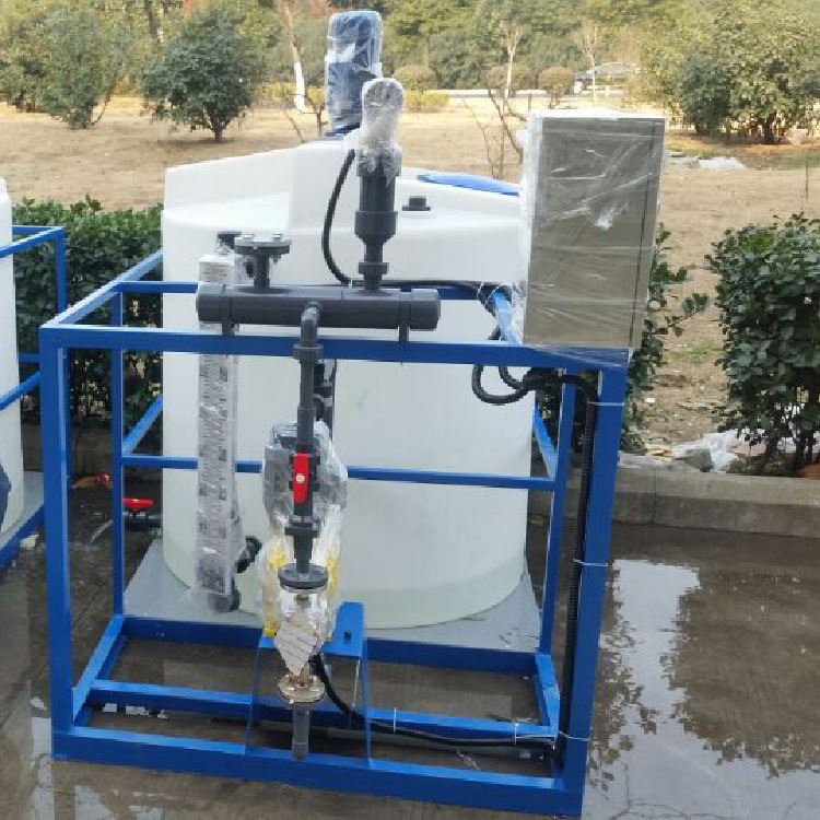 裝配完整的每套干粉自動加藥裝置包括輸粉機、料倉、槽體及干粉浸潤裝置、浮球液位控制器、攪拌機、進水管路配件及儀表、計量泵及其安裝附件。