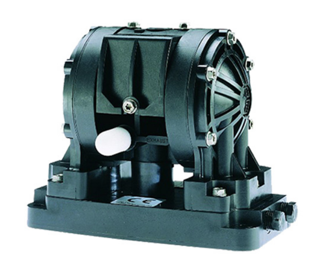 1/4 英寸容積式雙隔膜泵配備特氟龍(PTFE)和山道橡膠膜片,更加耐久。可選聚丙烯、乙縮醛和聚偏氟乙烯(PVDF)材質。