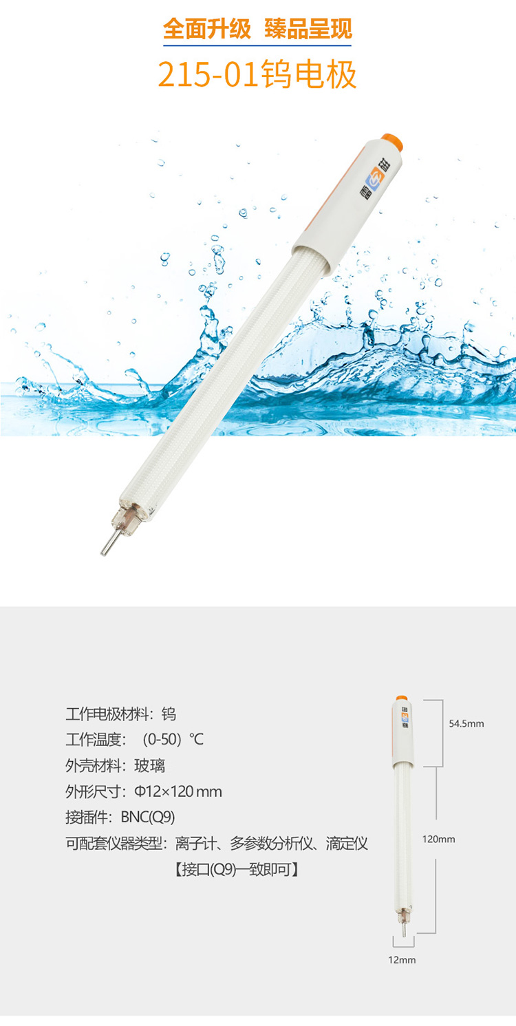 雷磁實驗金屬電極 215-01鎢電極傳感器探頭玻璃外殼材質電極探頭
