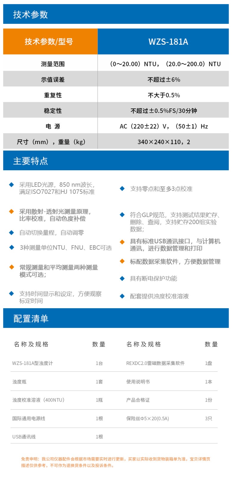 上海雷磁WZS-181A濁度計