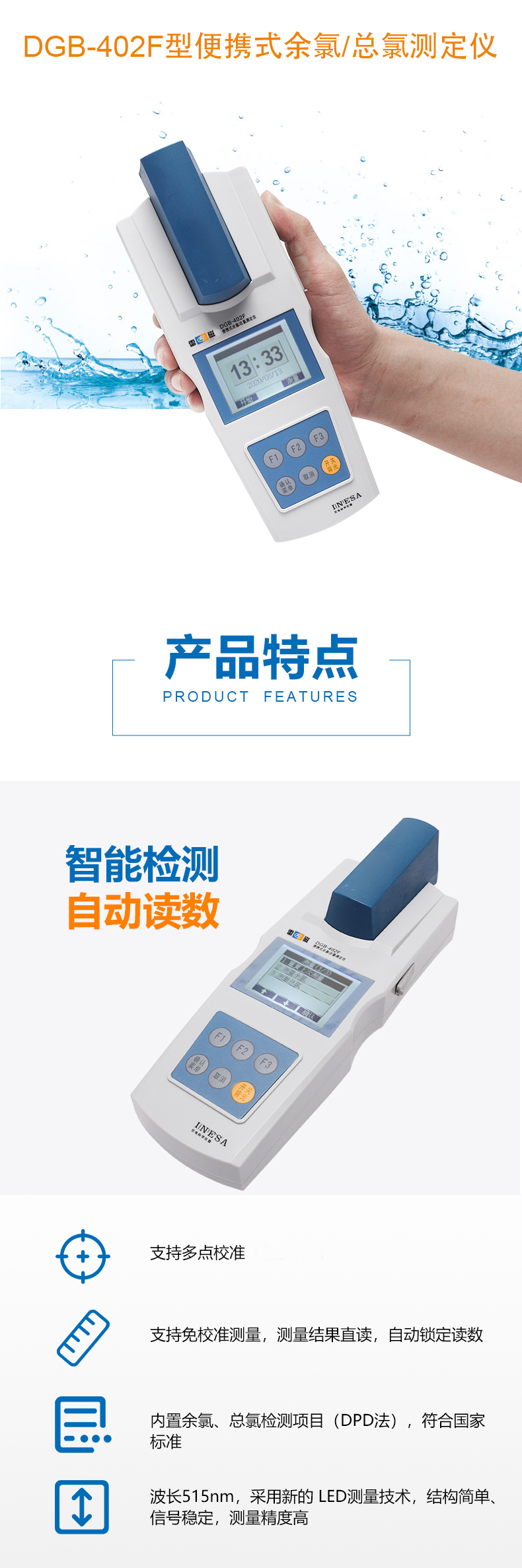 雷磁(leici)DGB-402F型便攜式余氯總氯測定儀水質分析儀標配套裝自動讀數