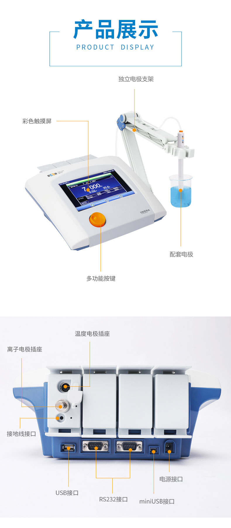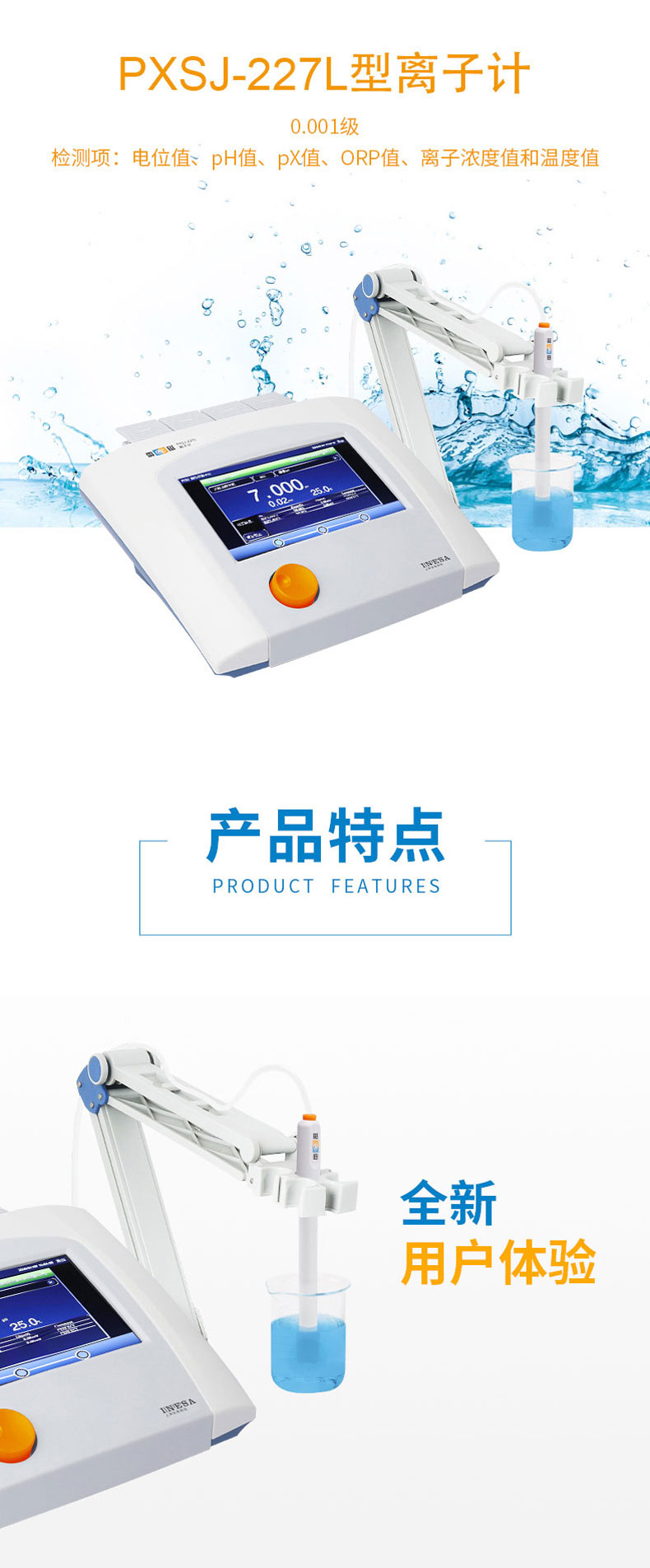 雷磁(leici)PXSJ-227L型離子計水質分析儀液晶顯示屏中英文操作自動溫補