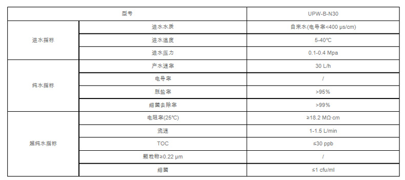 1.預(yù)處理柱,反滲透柱,超純柱,微濾,純水箱等一體化設(shè)計(jì),通水即用