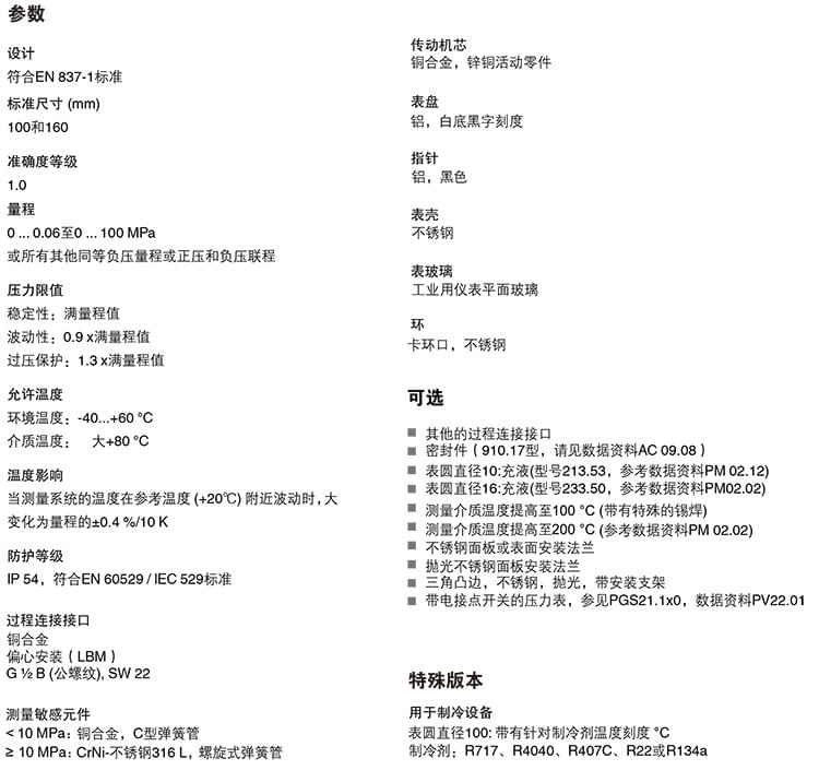 2. 膜片壓力表,化學(xué)工業(yè)型,表頭不充液/充液,高過壓保護壓力表,針對UHP應(yīng)用:422.12 432.50 432.56 423.36 423.25