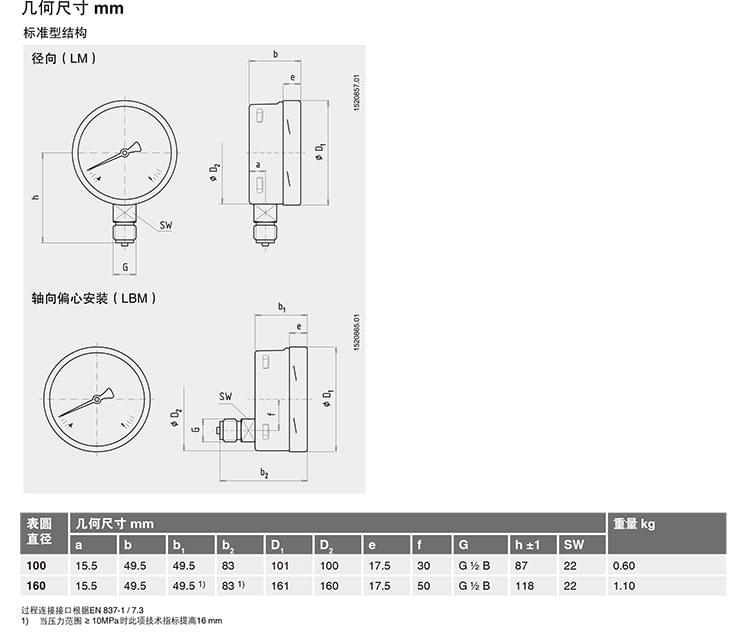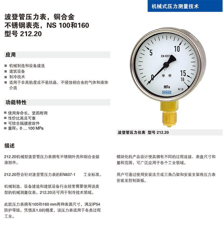 EN837-1波登管壓力表 212.20不銹鋼表殼