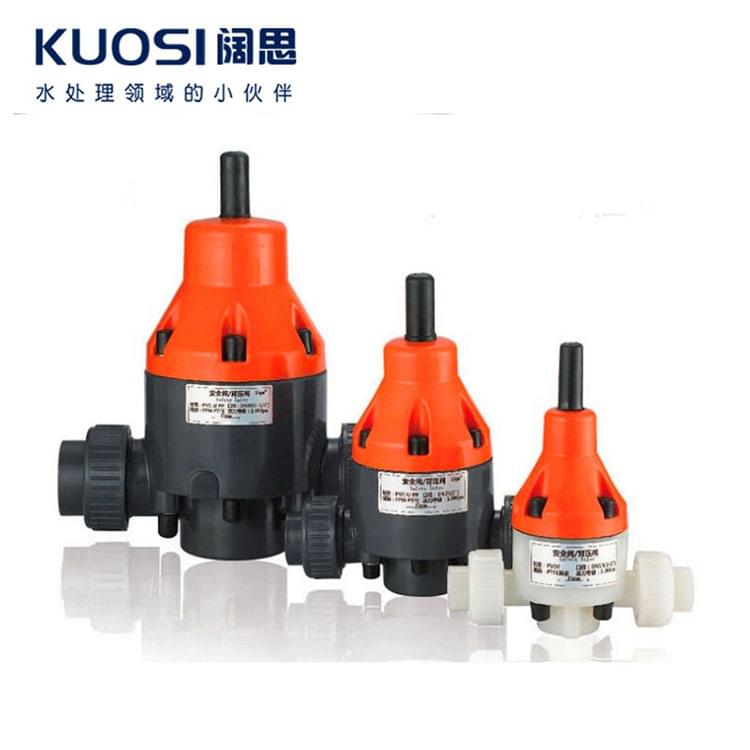 安裝于計量泵的正壓排放管路上,防止虹吸現象的發生,由于投加點壓力波動造成的投加量變化,在現場取下調整螺絲上的保護帽,旋轉調整螺絲,借助管路中的壓力表可調所需壓力,可通過調節螺絲在0-0.6Mpa范圍內設置背壓。和脈沖阻尼器配合使用減少水錘對系統的損壞,保持泵的出水口到背壓閥有一定的恒壓,保持系統流速均恒。