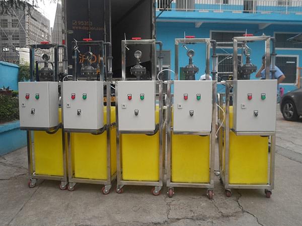 1、 溶液罐可選40L、100L、200L、500L,材質為PE (200L和500L可選不銹鋼或碳鋼襯膠)。