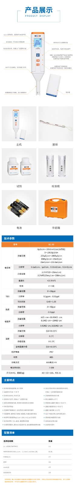 【雷磁】筆式電導率儀EC-30