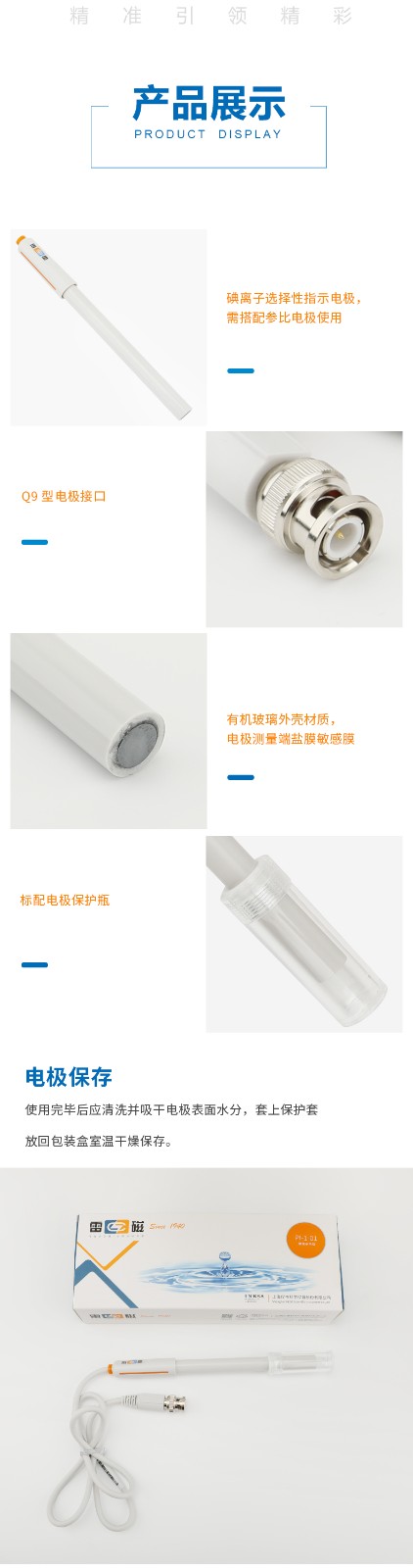 【雷磁】離子計復合電極探頭PI-1-01型碘離子電極